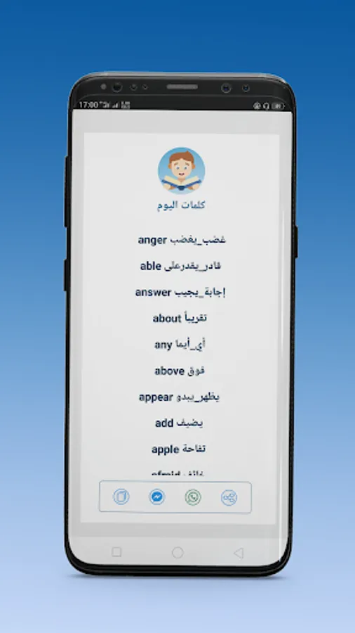 The application also contains English words and English vocabulary (Arabic and English) on a daily basis that help you learn English quickly, and you can also share it with your friends and colleagues through social networking applications such as Facebook, WhatsApp, Messenger and Tiktok, and also copy it to the phone clipboard easily.