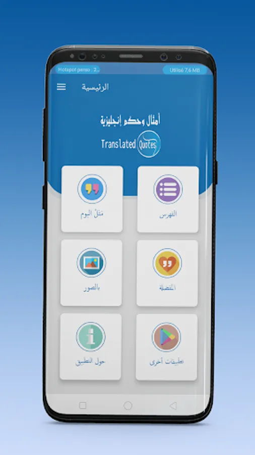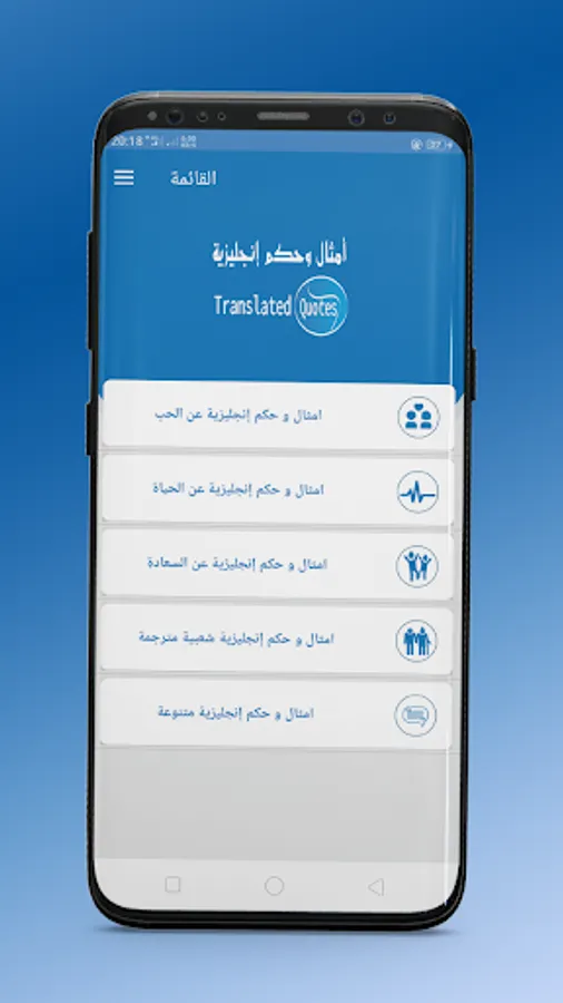 And the wisdom of the day translated: the application provides you with translated English-Arabic wisdom every day with an easy explanation of wisdom and a guide to translated English stories