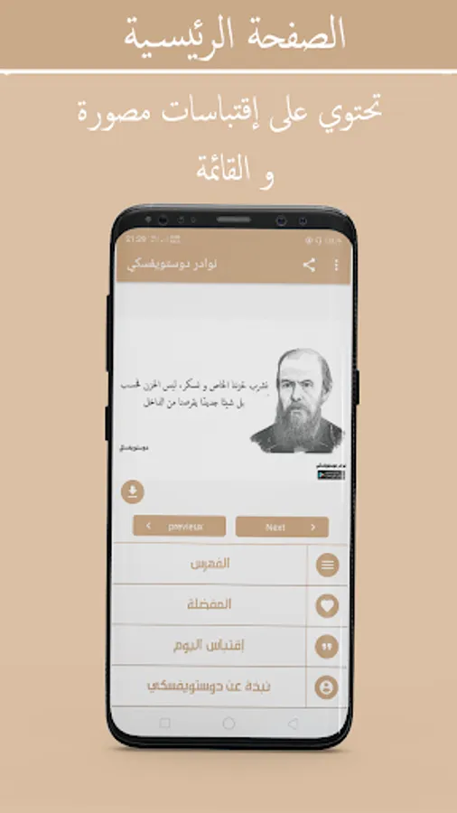 Dostoevsky's Anecdotes: Rare quotes by Fyodor Dostoevsky is a wonderful application that contains the greatest of what Fyodor Dostoevsky said, wisdom and proverbs from life, success quotes, short quotes, quotes with pictures with the ability to download to your phone, and love quotes by the Russian writer Fyodor Dostoevsky