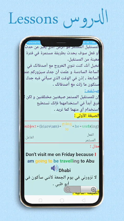 The last part, which is English sentences with translation, is the most important stage because it is considered a practical application of what I learned in the previous lessons.
