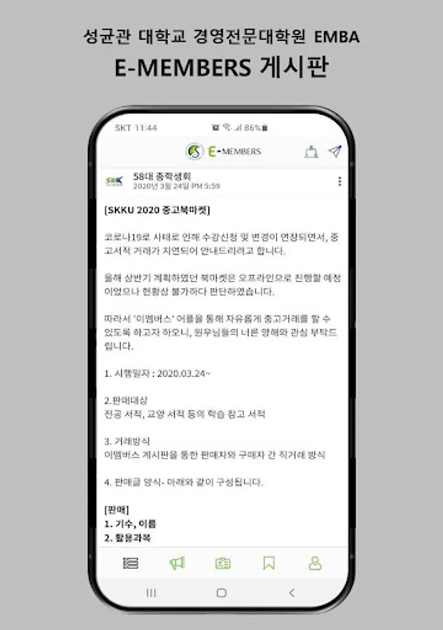 성균관대 EMBA 이멤버스는 경영학 석사학위 과정자, 졸업자, 교수진 중 허가된 분들만