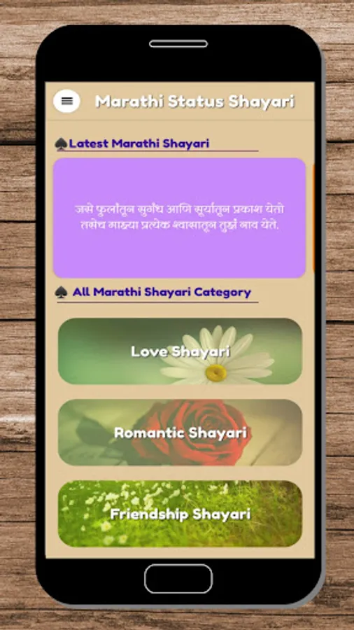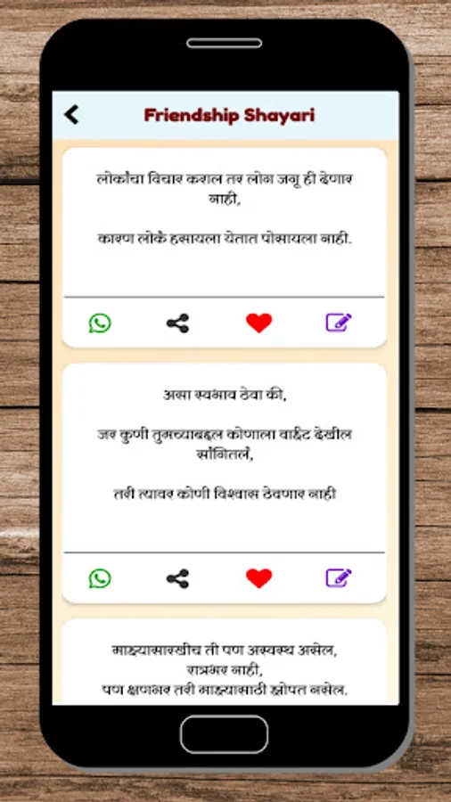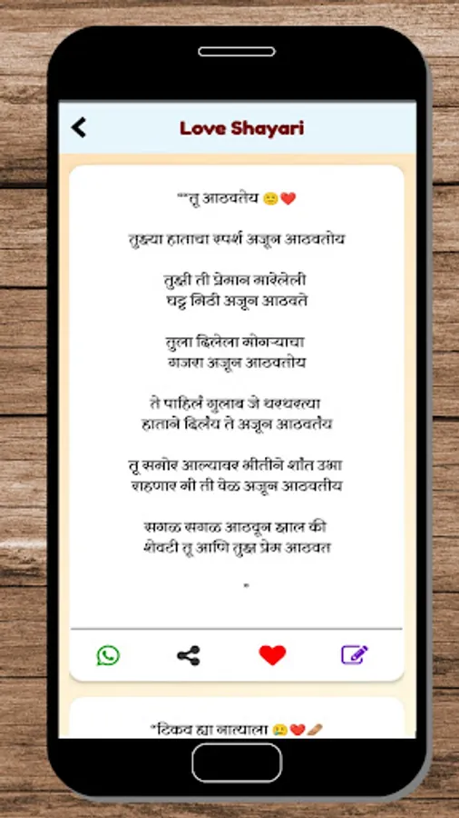 A very heavy collection of Marathi status shayari in today's era, love shayari if you want to impress your girlfriend, birthday status if it's your friend's birthday, father status, romantic status shayari. Special Status for Shivaji Maharaj Jayanti, If you have first love then we have first love status shayari available in our collection. Text editing option is provided in the app. Which gives you the option to edit and share what you want. Try our app once.