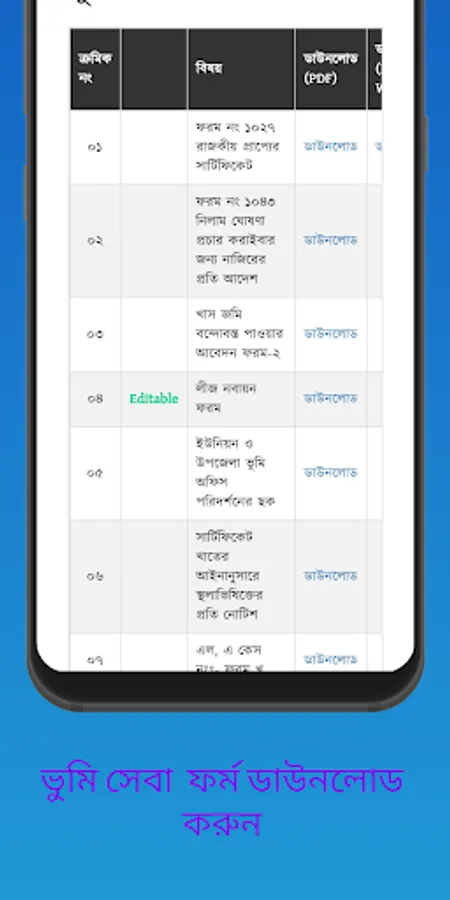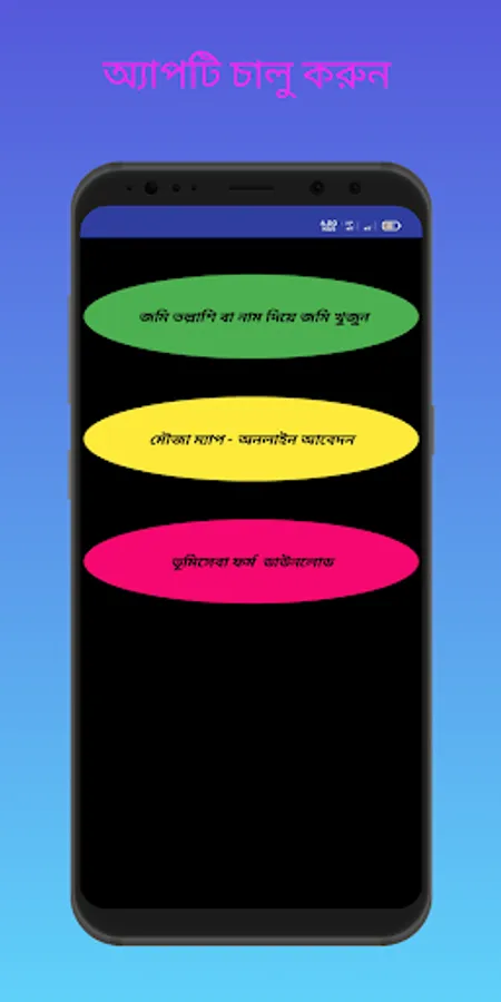 সরকার ভুমি সেবার মাধ্যমে সরকারের ভিশন ২০২২ বাংলাদেশে সকল সেবা জনগনের দোরগোড়াতেই পৌঁছে দেয়ার লক্ষে ভুমি মন্ত্রনালয় ভুমি বোর্ড নিরলস কাজ করে যাচ্ছে। দেশের বিভিন্ন উপজেলা ভুমি অফিসের অধিন ৩৪৬২ টি ইউনিয়ন ভুমি অফিসের মাধ্যমে ৫কোটি ভুমি উন্নয়ন কর থেকে প্রায় ৬০৬কোটি টাকা ভুমি অফিসের কর আদায় করা হয়ে থাকে যেখানে সেবার সংখা ৩কোটি ৬০কক্ষ। এই বড় সংখ্যক ভুমি সেবা সর্বোত্তম সেবা প্রদান করার লক্ষে কাজ করে যাচ্ছে তাই আমরা অতি সহজে আমাদের বাবা ওদাদার কোথায় কত জমি আছে তা খুবই সহজে খুজে বের করতে পারি এ ছারাও এই অ্যাপ টি দিয়ে আপনার জমির মৌজা মেপ বের করতে পারবেন ও জমি সকোল ফর্ম অতি সহজে ডাউনলোড করতে পারবেন, তাছারা এখানে পাবেন ভুমি সেবা জমি তল্লাশি করা যাবে ভুমি ও রেজিস্ট্রি সেবা বাংলার ভুমি দাগের তথ্য নিন জনির তথ্য অ্যাপ বাংলা, জমির তথ্য অ্যাপ বাংলা জমির রেকর্ড দেখার অ্যাপস দেখার জন্য আর কোথাও জেতে হবে না কারন এখন আপনার যখন দরকার তখনি অনলাইনে মাধ্যমে খুজে বের করতে পারেন তাছারা যাবতিও বিষয়ে এই অ্যাপটির ভিতরে দেওয়া আছে জমির যত হিসাব দওয়া আছে জমির খতিয়ান যাছাই অনলাইনে জমির মাপ জমির তথ্য জমি মাপার নিয়ম অনলাইনে দাগ ও খতিয়ান দেখা খতিয়ান চেনার উপায়।অ্যাপটি জদি আপনাদের ভালো লাগে তাহলে ৫ স্টার রেটিং দিন