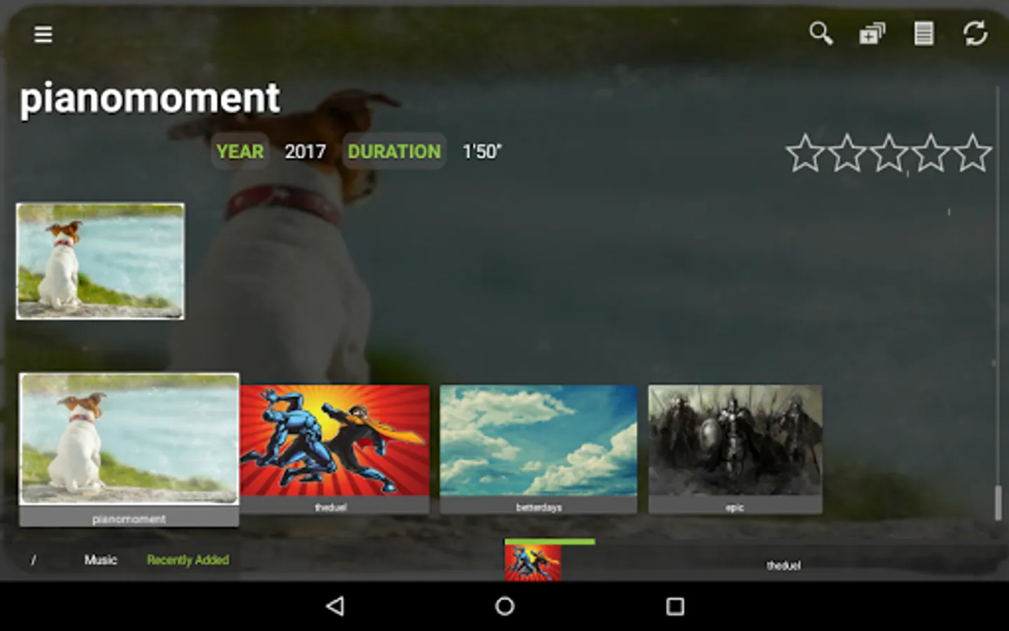 • Full details displayed for music, including title, album cover, album, artist, track number and genre.