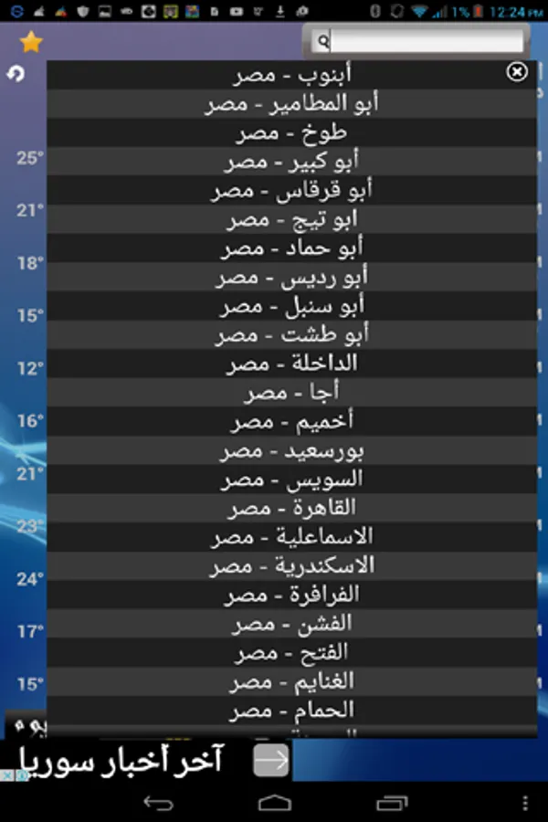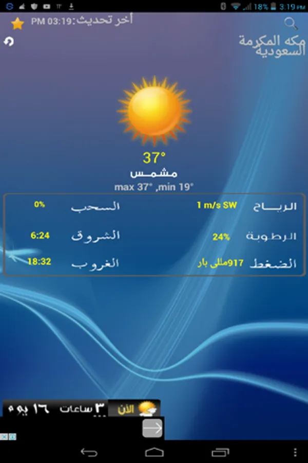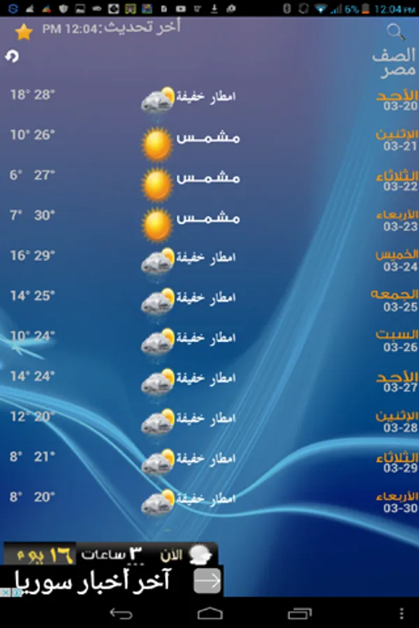 الطقس هو برنامج عربى يعرض درجات الحرارة المتوقعة لكل المدن العربية فهو يقوم بعرض اتجاه الرياح ونسبةالرطوبة والضغط ونسبة السحب والشروق والغروب ودرجة حرارة اليوم كما يعرض درجة الحرارة واتجاة الرياح والضغط ونسبة الرطوبة كل 3 ساعات لمدة 7 أيام ويعرض درجة الحرارة المتوقعة خلال 16 يوم القادمة.