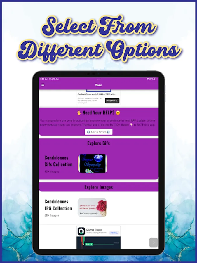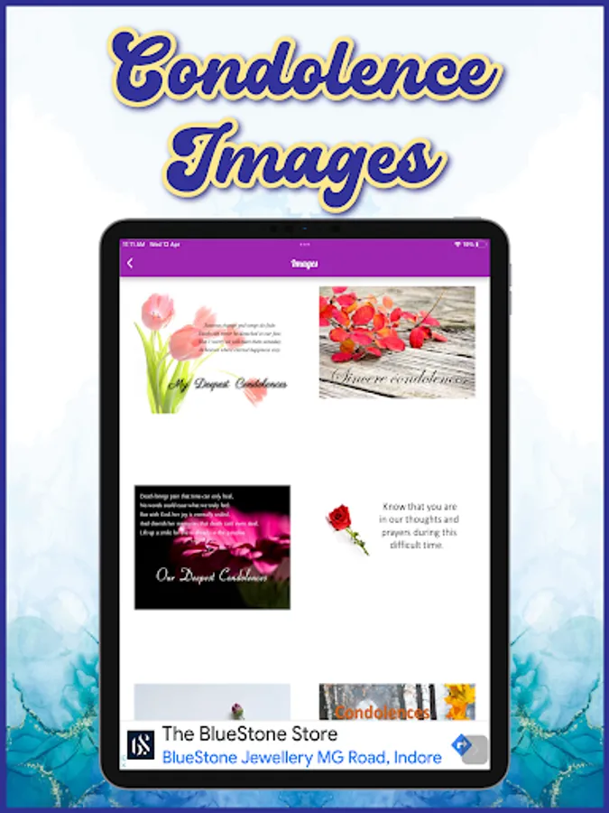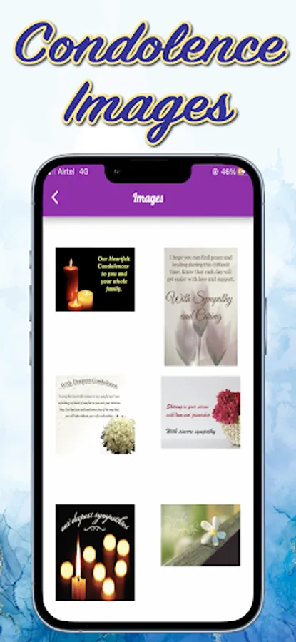Note: The app requires an active internet connection to access the extensive collection of condolence messages, images, GIFs, quotes, and personalized e-cards.