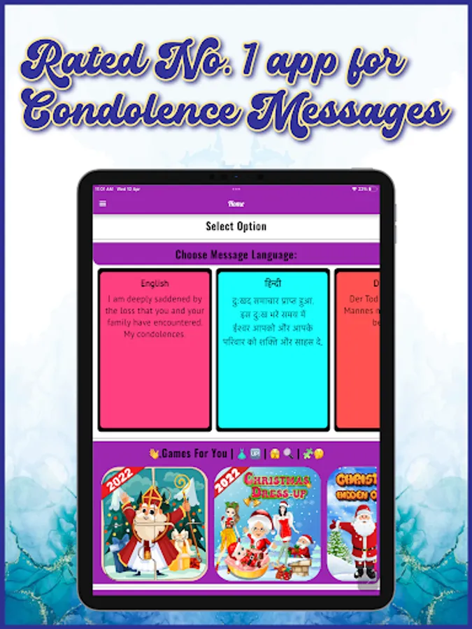 Grief is a universal human experience, transcending the boundaries of language and culture. In times of loss, we all seek solace and support from our loved ones. However, when expressing condolences, language barriers can sometimes make it challenging to convey our deepest sympathies. To address this need, we introduce Condolence, an innovative and comprehensive app that provides a platform for expressing heartfelt condolences in all languages.