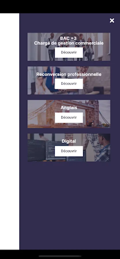 Application mobile vous permettant de trouver et de suivre la meilleure formation pour vous en lien avec votre reconversion professionnelle.