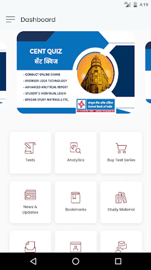 An app created for the purpose of conducting Online Test for Bank staff on mobiles. The app is with advanced features which makes the exams easier and quite accessible too. The registered users gets news and notifications for the test planned. Once the user appears for the test, the user can check the attempted, left, right, wrong questions and find out their strengths as well as a weak area of performance through the detailed analytic report. Also, one can bookmark important question for review and solve it afterwards.