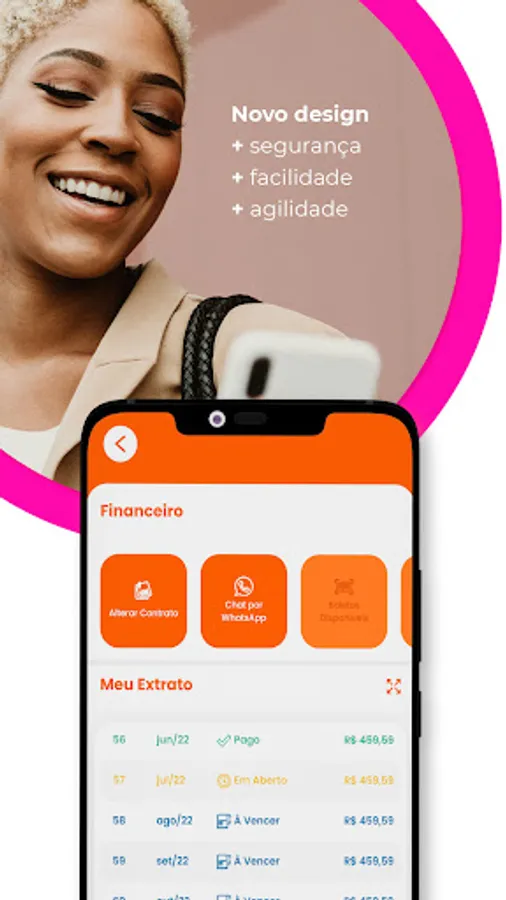 More practical, more fluid, safer and much more dynamic. Everything you need on your device's screen. With it you can consult overdue bills, contracts, usage calendar, financial summary and much more.