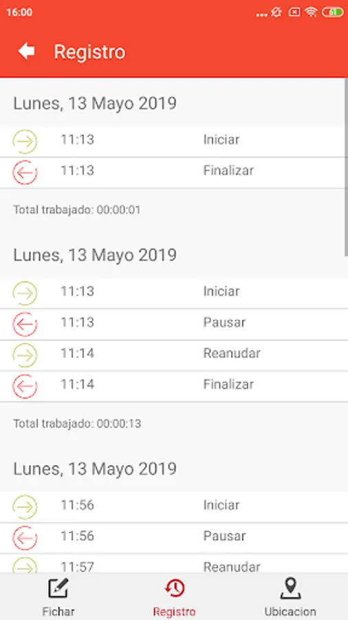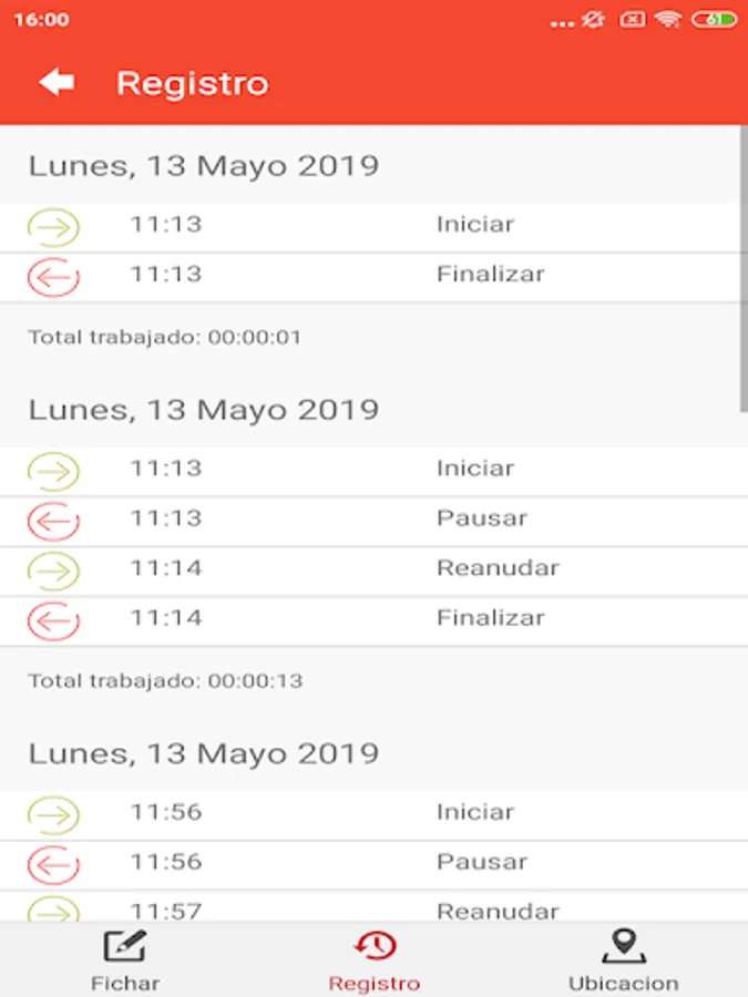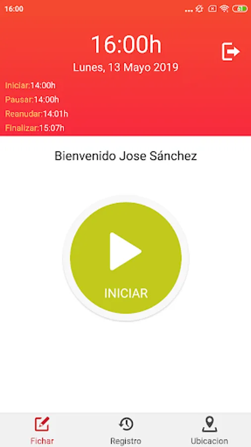 Application with which you can mark the beginning and end of the working day. The user can start the working day, stop for the break or lunch hour if necessary and resume their day, finally they can end their day.