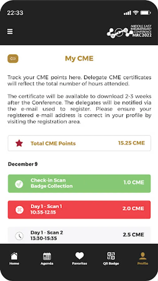 • Accessing your e-badge and easily using it to check in during scanning timings