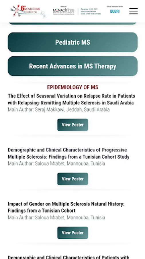 The official application of the Sixth Middle East North Africa Committee for Research and Treatment in Multiple Sclerosis (MENACTRIMS) Congress which will take place from Friday, December 10 to Saturday, December 11, 2021 both physically and virtually at the Intercontinental Hotel, Dubai, United Arab Emirates. The congress is taking place in a hybrid format, offering many exciting possibilities to grow your network, transfer knowledge and explore the latest industry developments.