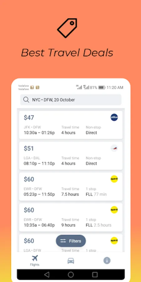 ✓ Use Smart Filters to find the best flight deals, Filter by price, duration, and rating.