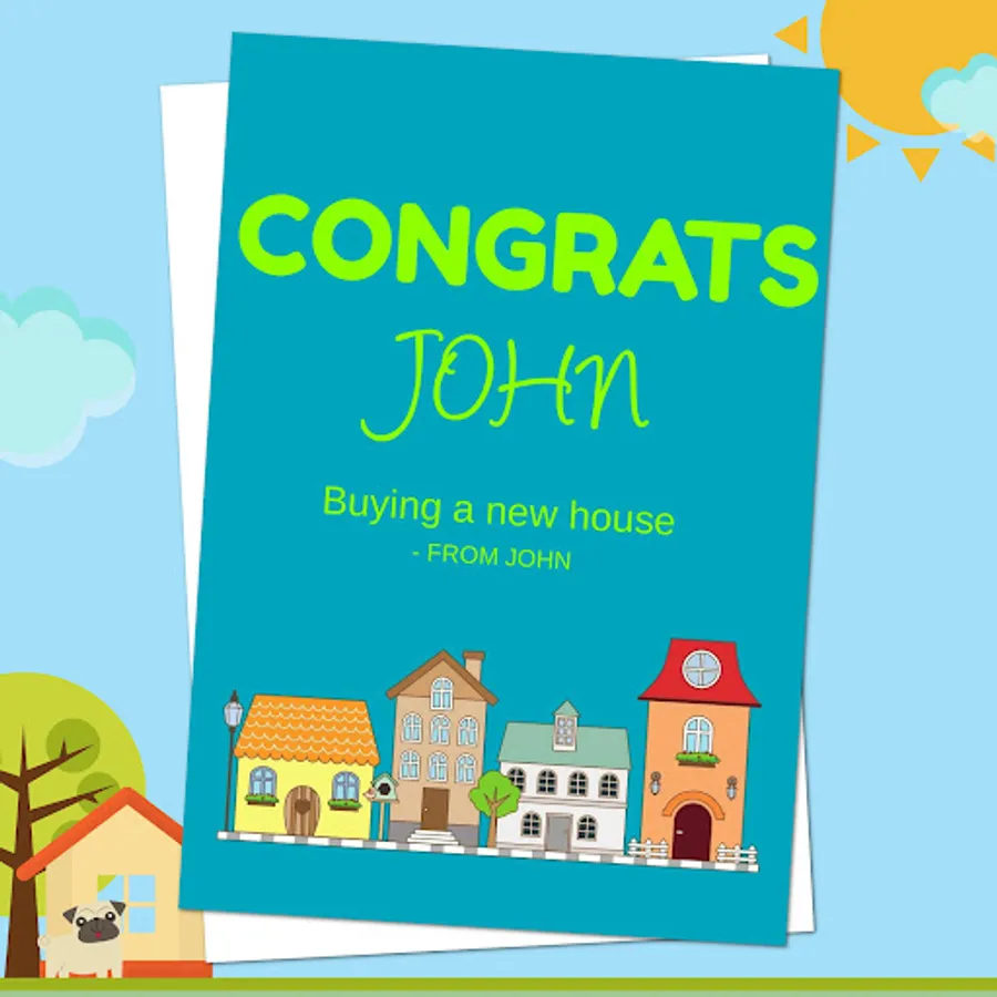 The feeling you get when buying new house is un-expressable by words. But why not put them in congratulations greeting cards.