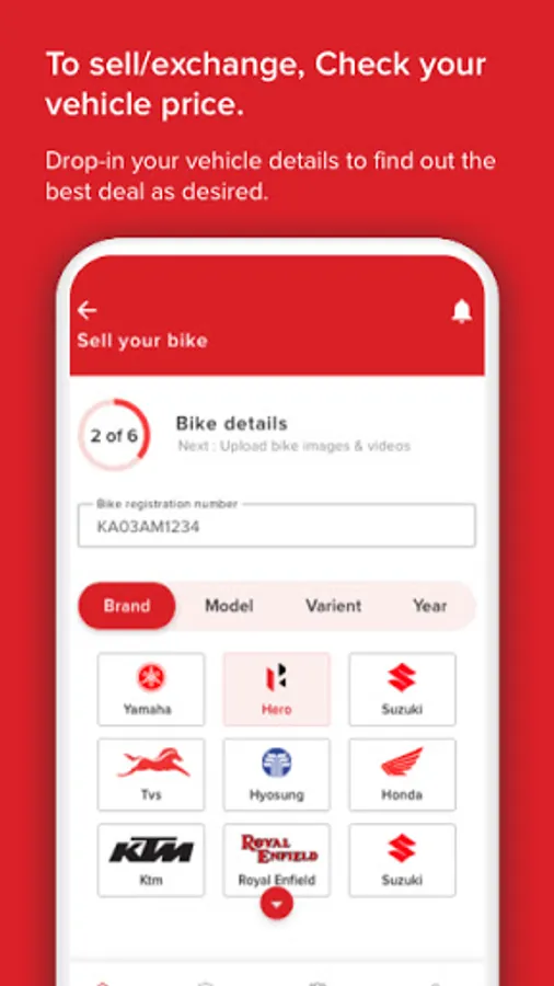 Step 4: Select your city, bike brand, model, variant, and year of purchase