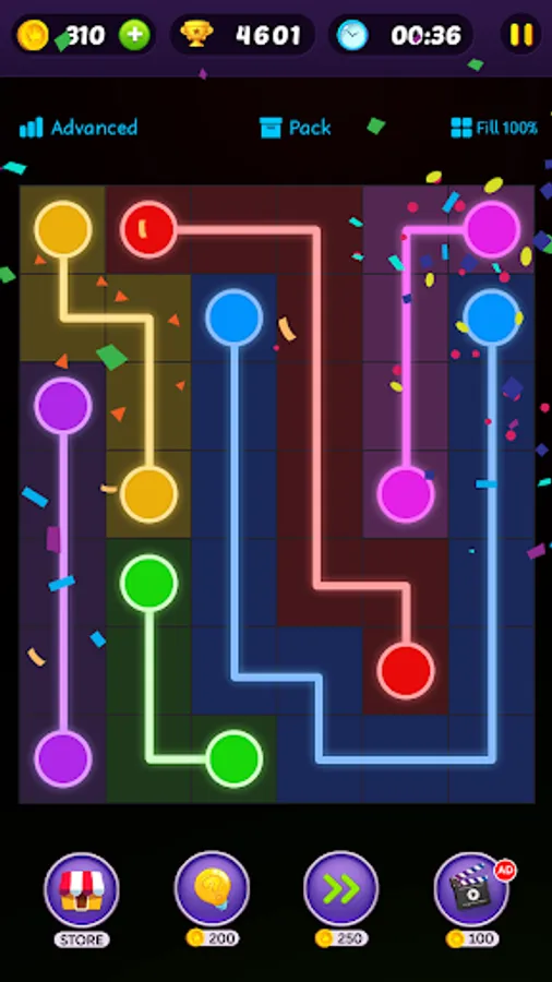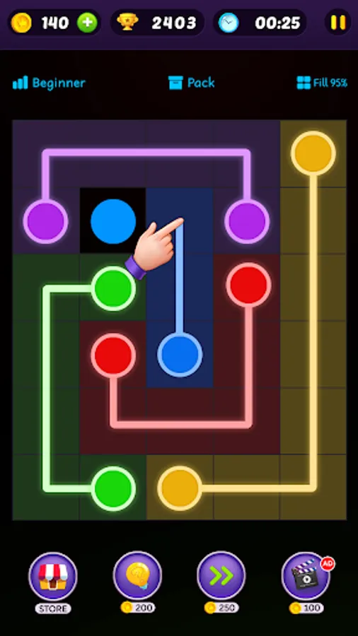 Challenging stages suitable for all skill levels in this dot-connect game.
