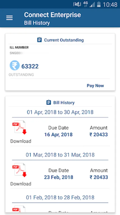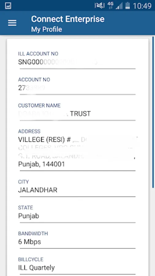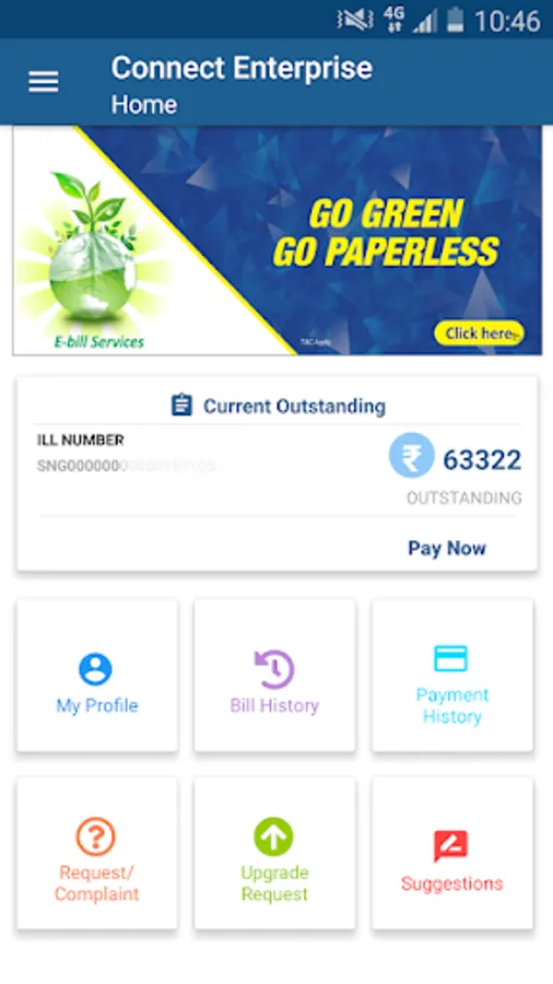 Connect Broadband Enterprise Mobile App Offers following Features to Wireline and Broadband Customers:-
