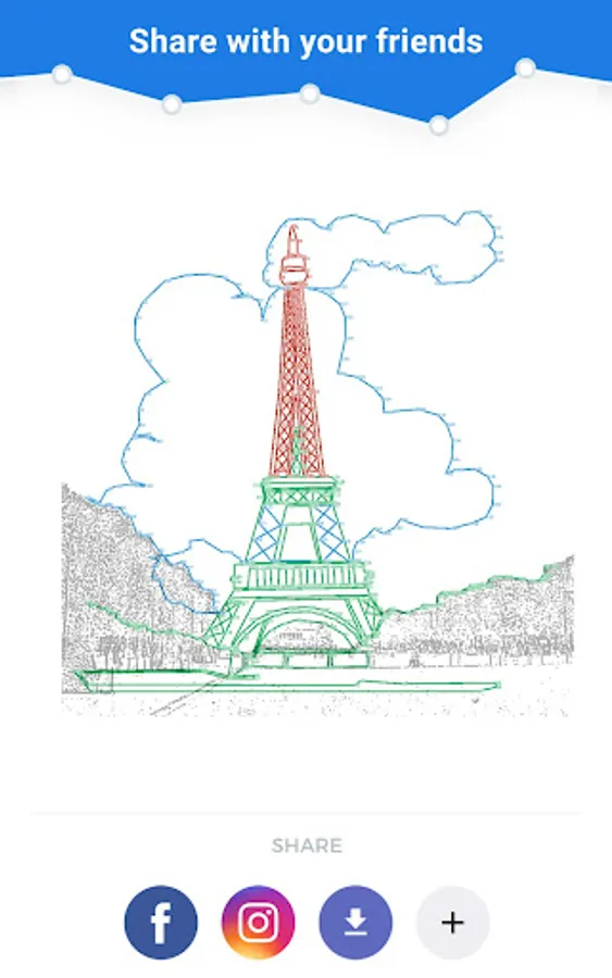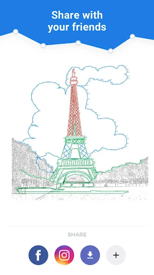 - Share connected pictures with friends and family on Instagram, Facebook and on other social apps.