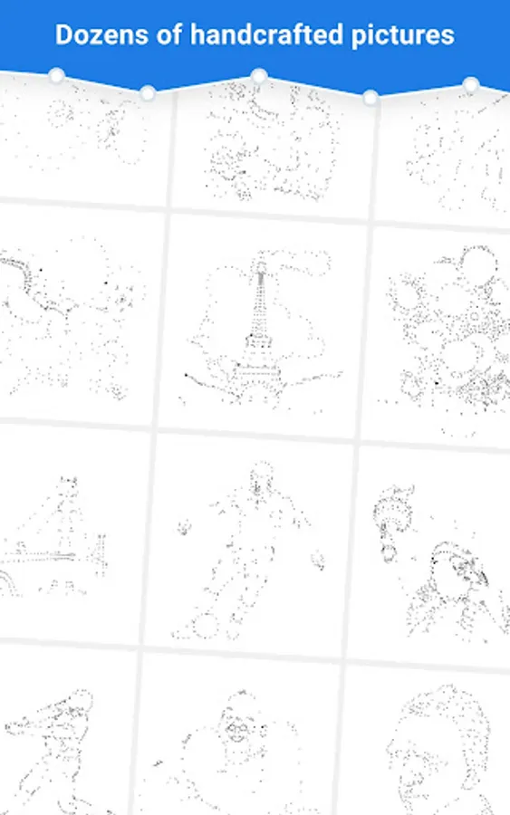 - Dot to dot contains over 50 pictures to connect in the theme of animals, vehicles, famous places, art and many others.