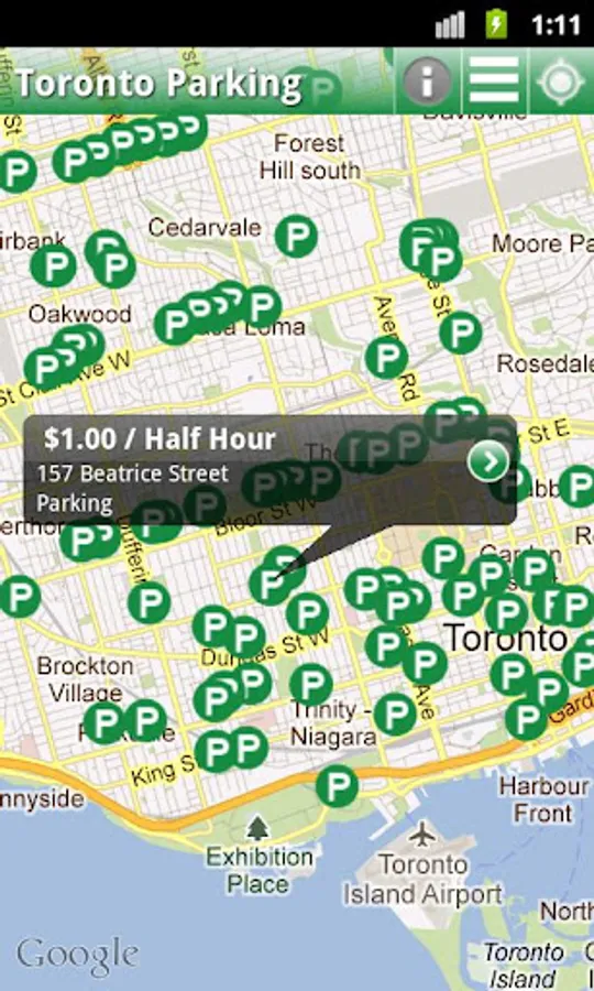 After parking my car at a garage in downtown Toronto for $20 I noticed a GreenP just around the corner that charged only $4! I searched on the Android Market for a parking app, plenty of them but none worked for Toronto, so decided to build this one.