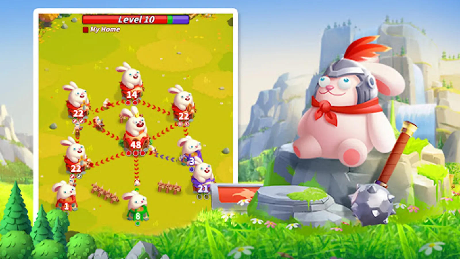 There is not a cuter city takeover strategy game than Rabbitville tower defense games. You need quick thinking to find the strategy to pass clash of clans levels and conquer the tower from city takeover! Distributing your resources of tower gamesand giving conquer games commands orderly and reasonably is the key of castle games to victory! There will be many clash of clans challenges and many take over the world glories at these city takeover levels. Will you be the king of strategy games?