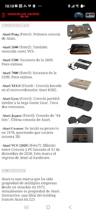 Welcome to the Guide to Consoles from the 80s and 90s, the app that will take you back to the golden age of video games. In this application you will find detailed information about the most popular consoles of the time, including iconic brands such as Sega, Nintendo and Atari, and models such as the Master System, Nintendo NES and Atari 2600.