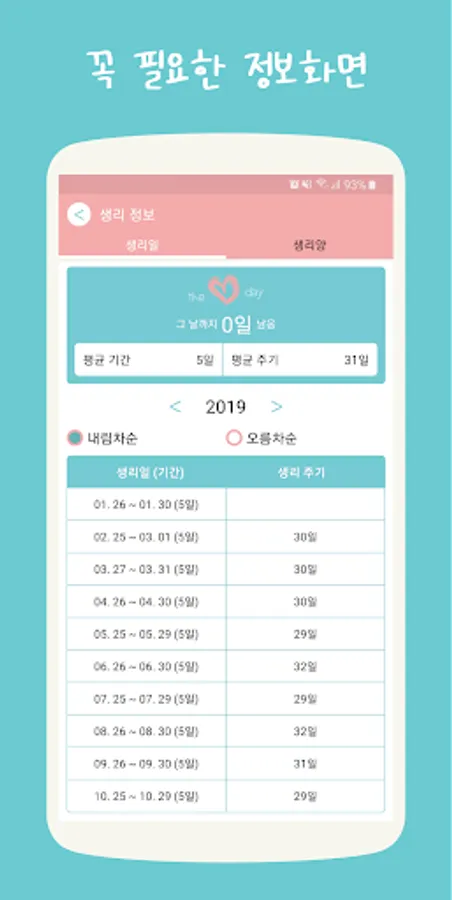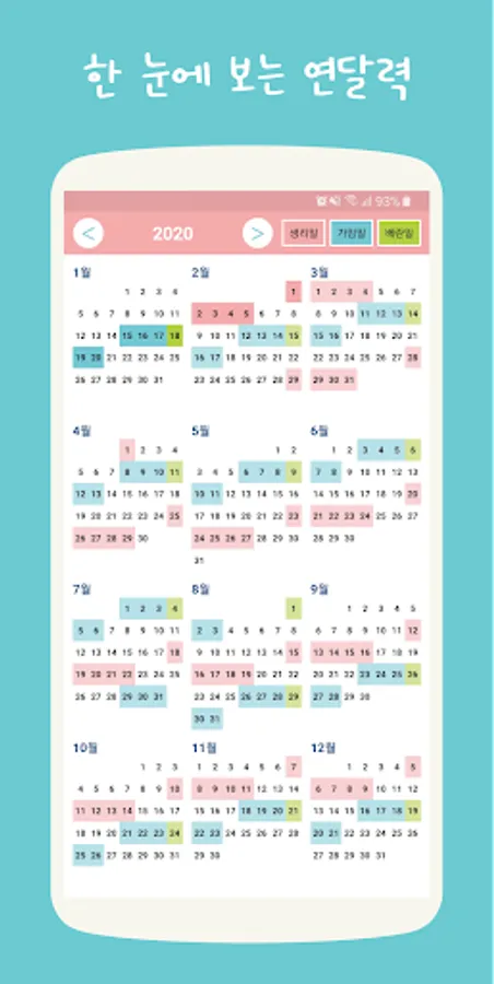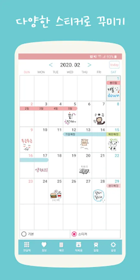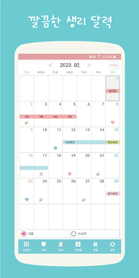 - Love days, birth control dates, menstrual flow, and notes can be checked with icons on the calendar screen.