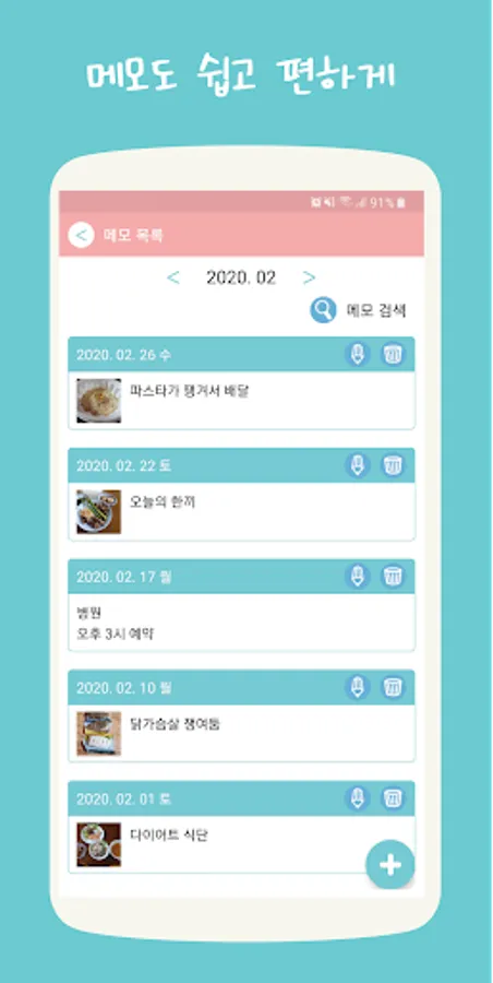 - You can record daily information in notes and photos and easily check it on the calendar.