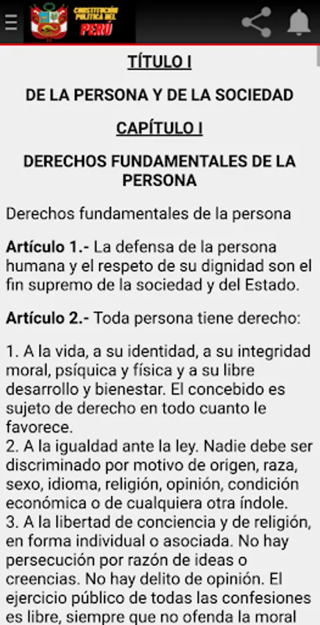 With this application of the Political Constitution of Peru, you can read and learn about the rights and duties established in the Constitution.