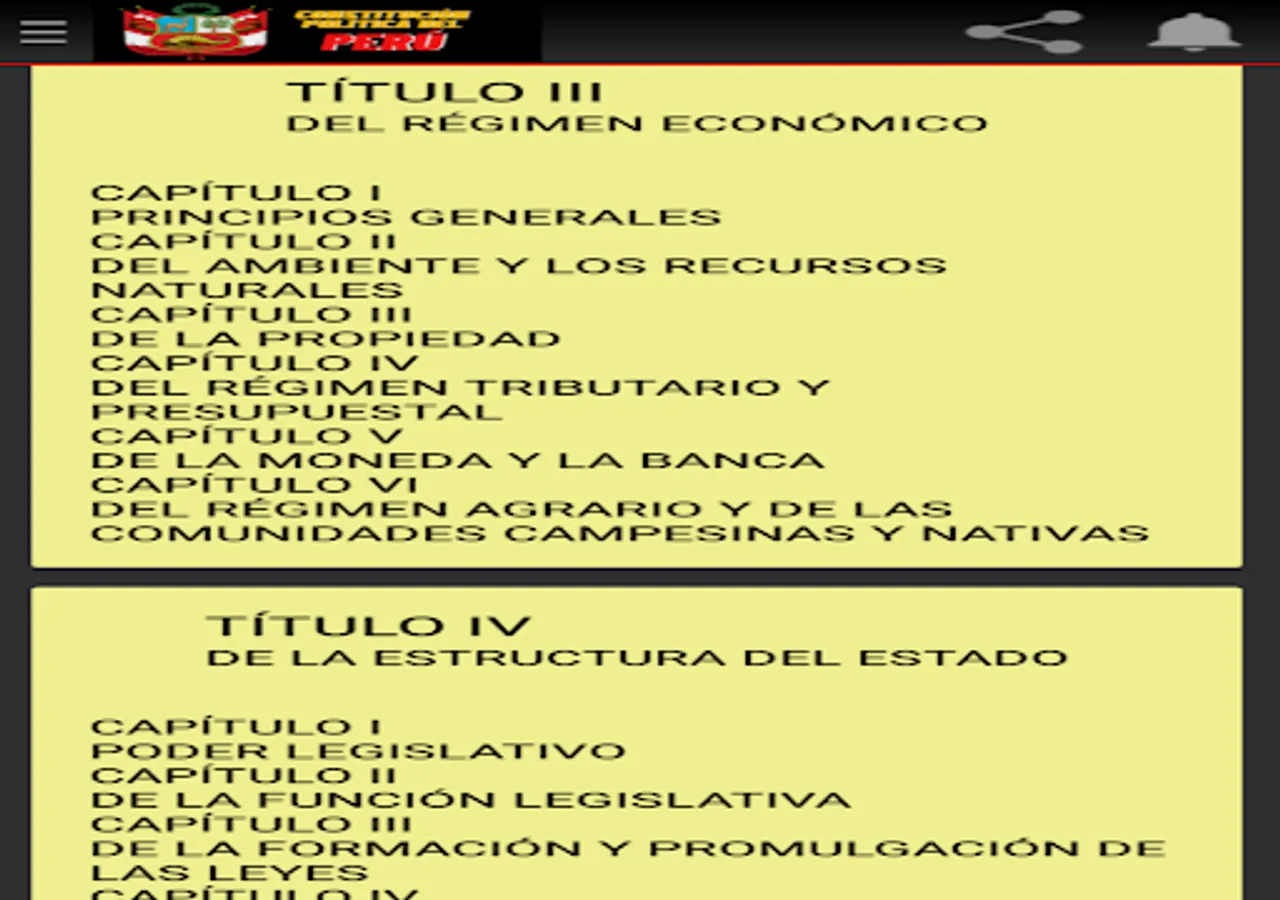 Learn about your rights and duties as a citizen and become an informed citizen. Download the application of the Political Constitution of Peru now and start reading and learning.