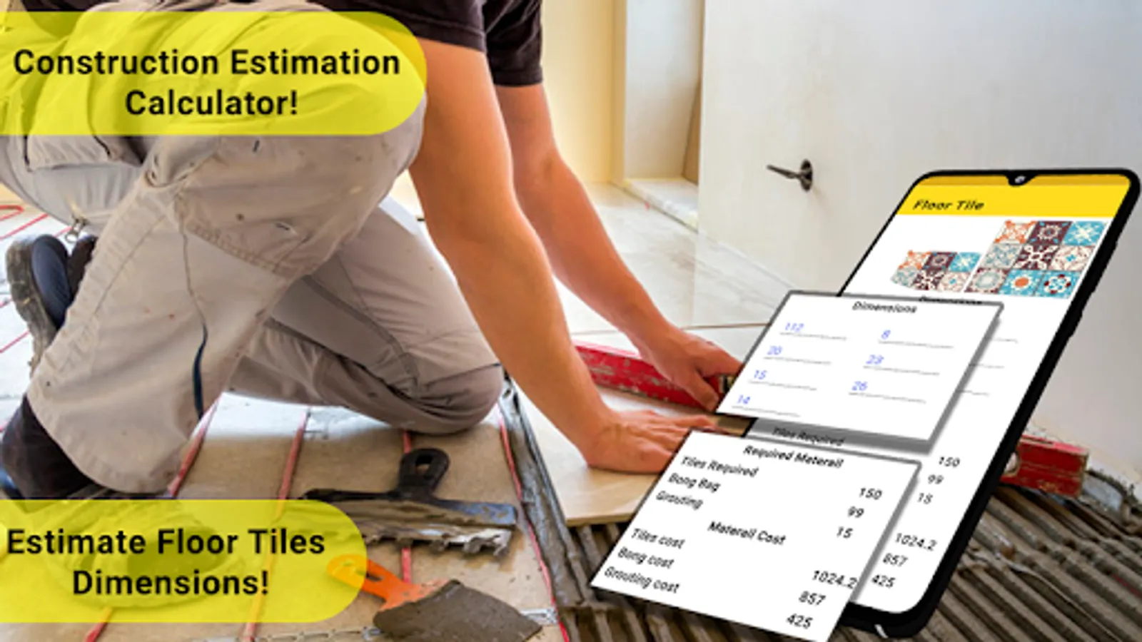 Floor & wall tiles are the most important features to Calculate amount of Floor & tiles wall required for a floor and walls and easy way to find out how many tiles you would need to cover a given area. Floor & tiles wall calculation use strong mathematical equations and then provide Floor & tiles wall estimate. You can also calculate washroom tiles and bathroom tiles or any other floor tiles using Floor & wall tiles.
