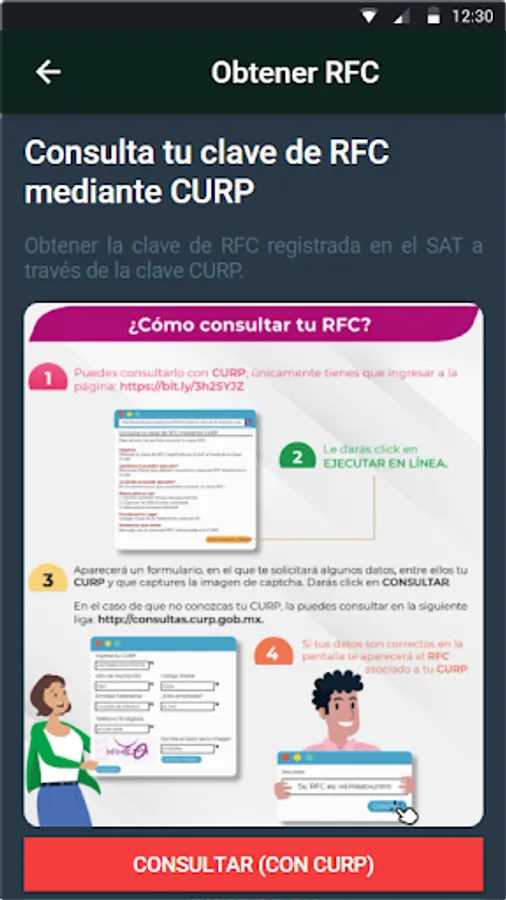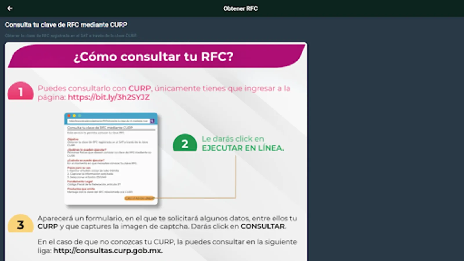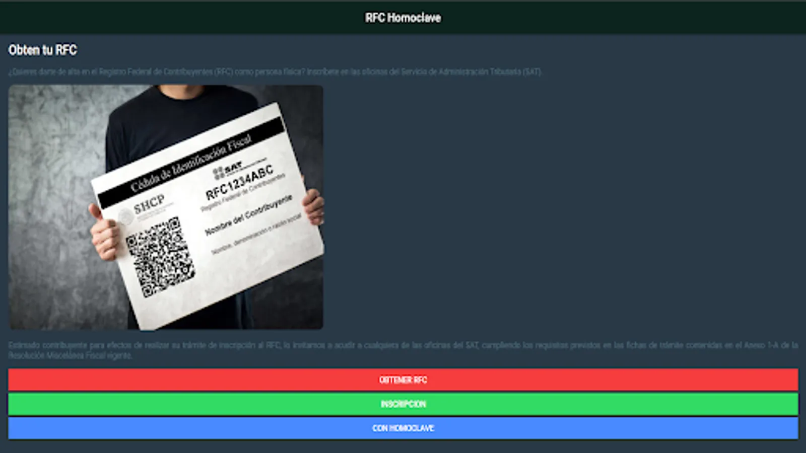 Calculate, Consult and Print your RFC with Homoclave (or with CURP) of the SAT, Online through the website, you will find the link in the Application that takes you to the corresponding form.
