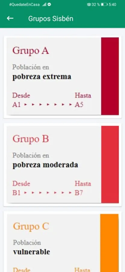 This application is merely informative, both the consultation form and all the information that can be seen within the application is presented directly from the OFFICIAL WEBSITE of Sisbén, therefore all the data provided is directly presented to said entity.