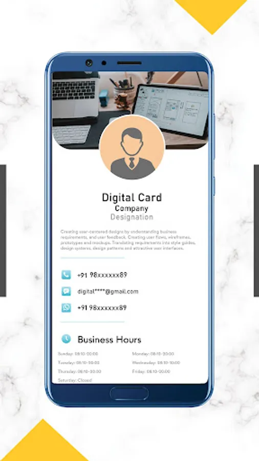 Create your card and share your all information that is actionable with one click event like call, email, WhatsApp, navigation, website, payment, social link, maps, appointment and many more