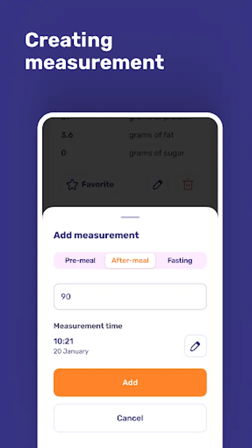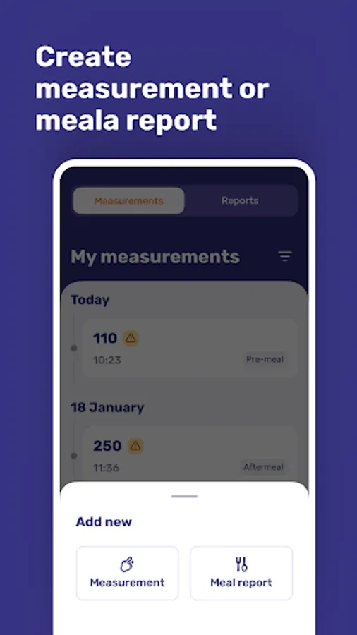 The application warns about food that causes high sugar levels and provides a recommendation for proper nutrition so that the patient can change the composition of the diet at the very next meal.