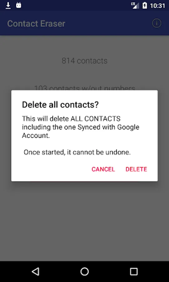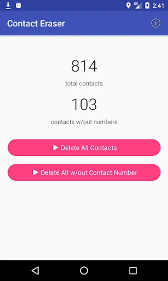 An easy to use once-click application for erasing all contacts in mobile devices.