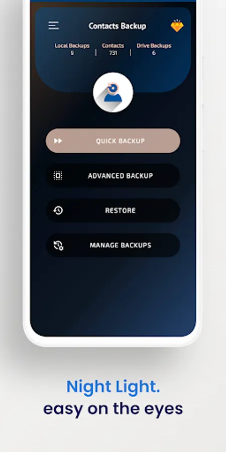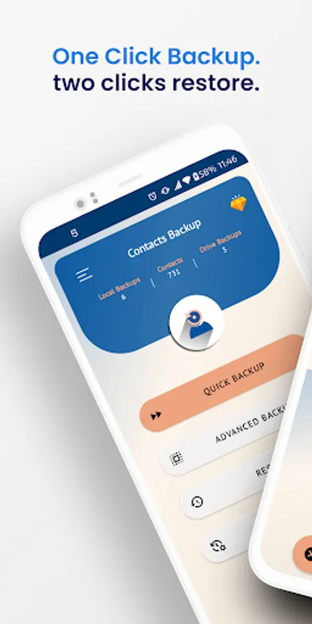 ✓ One click app backup, will create a backup for all of your contacts, saving them to Device storage and Gdrive.