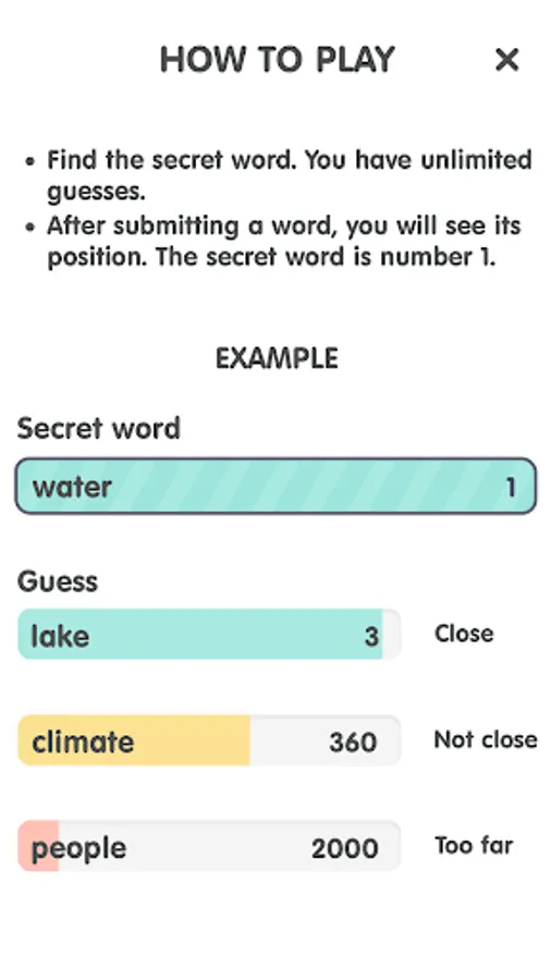 - The words were sorted by an artificial intelligence algorithm according to how similar they were to the secret word.