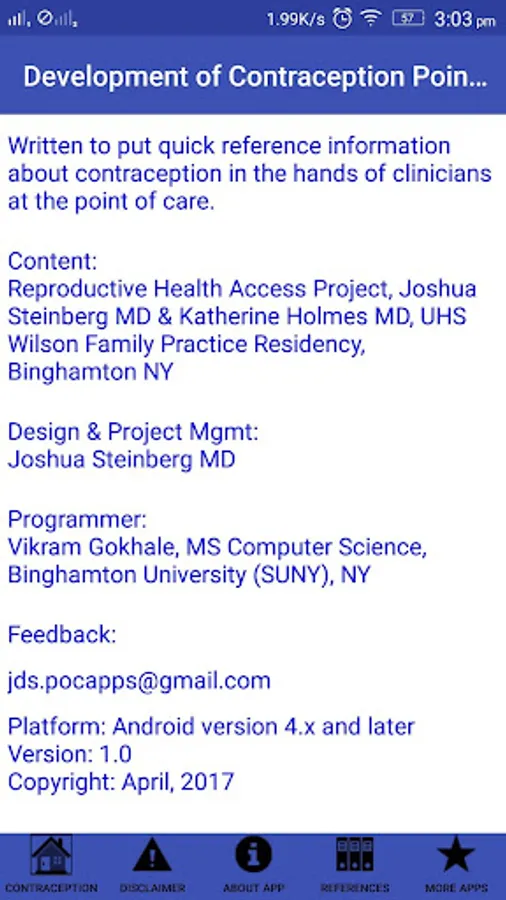 This app is written and intended for practicing physicians like family physicians, internists, pediatricians, OB-Gyns, and women’s health clinicians of all kinds; and it is particularly useful for resident physician trainees and medical student trainees (and NP’s & PA’s) as they grow into expertise in contraceptive care.