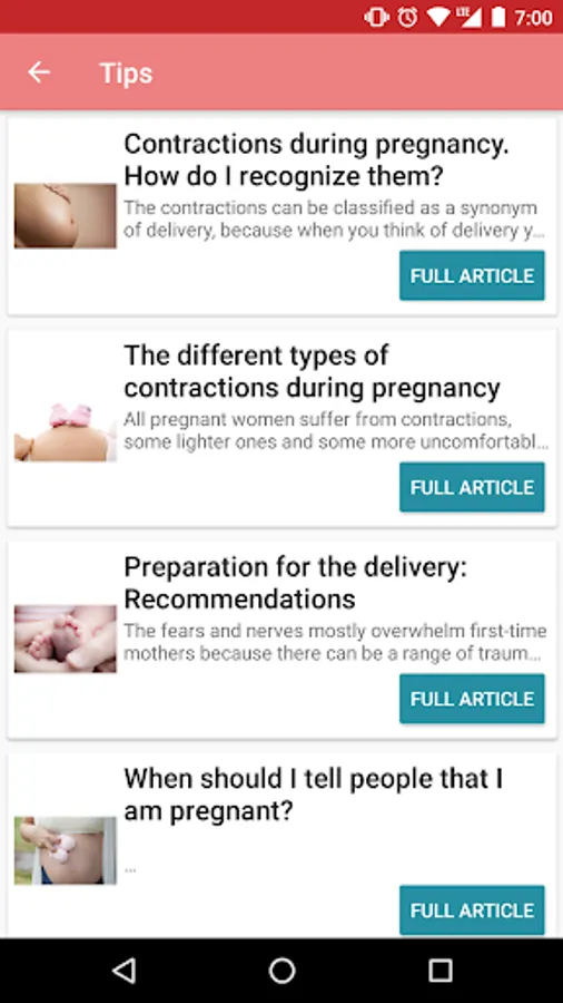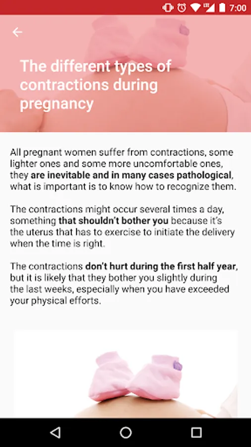 * Contraction tracker, contraction counter and tips: An all-in-one app to help you in the final stage of your pregnancy.