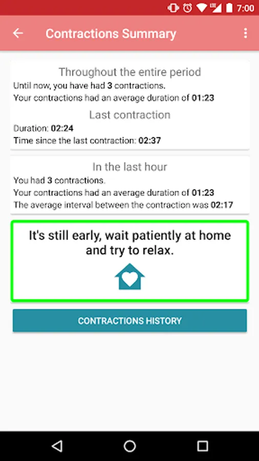 Informative note: This contraction app is an informative app and it should not be considered as 100 % true under no circumstances, due to the fact that it is based on estimations and is no medical or scientific test.