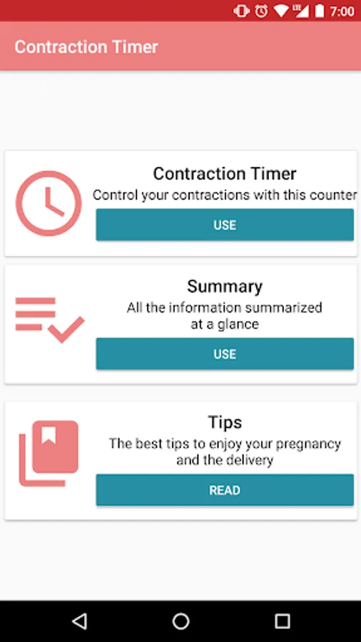 Contraction timer is the perfect app to count your labour contractions, their duration and intervals during the last stage of your pregnancy week by week to know when to go to hospital to give birth.
