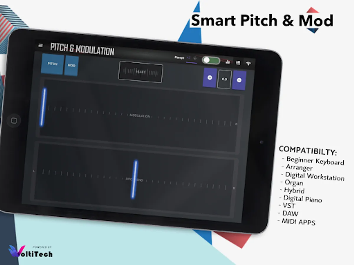 Play like a pro with pitch bend and modulation wheels with high precision. Th eapplication allows you control connected Digital keybaord that support MIDI messages.