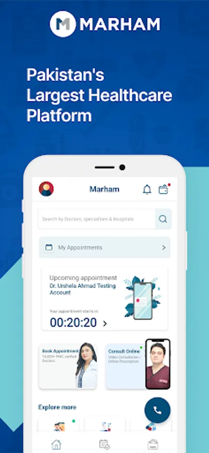 Marham is the highest-rated telemedicine app in Pakistan, connecting you with the largest pool of verified doctors and top medical specialists. We offer online appointment booking, video consultation, lab test booking, and medicine delivery services to help you get the best healthcare experience with no additional charges.