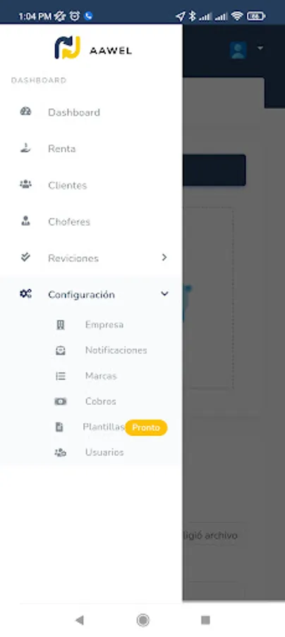 App with the cula, clients, their vehicles and the drivers of said vehicles are managed, as well as a maintenance control, messenger income, etc.