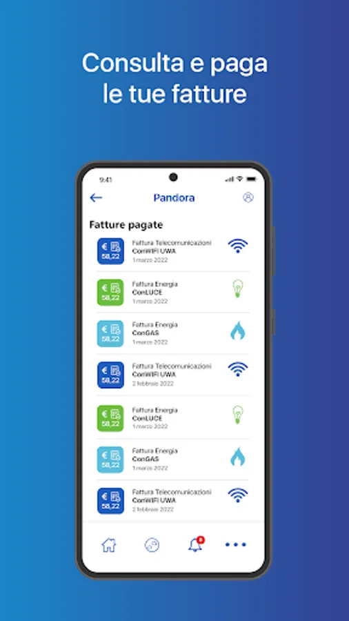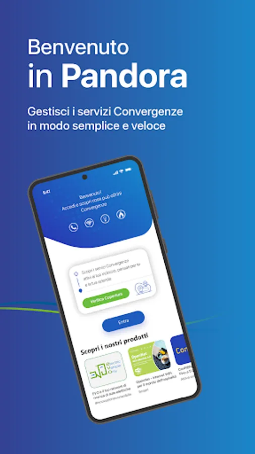 It is the free application dedicated to Convergenze S.p.A. customers By downloading the App on your smartphone and tablet, you can quickly and safely access your dedicated PANDORA area. To access, enter the username on the invoice and then set a password.