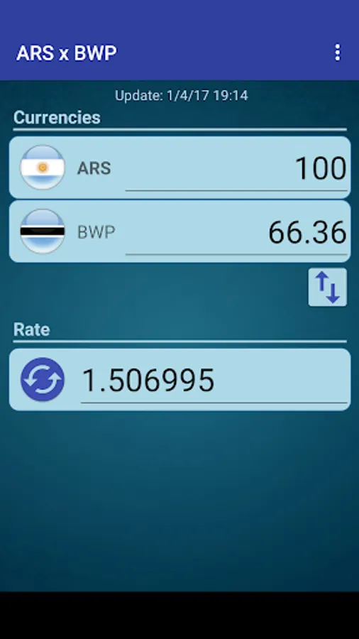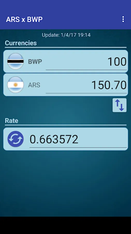 A simple currency converter from Argentine Peso to Botswanan Pula and from Botswanan Pula to Argentine Peso.