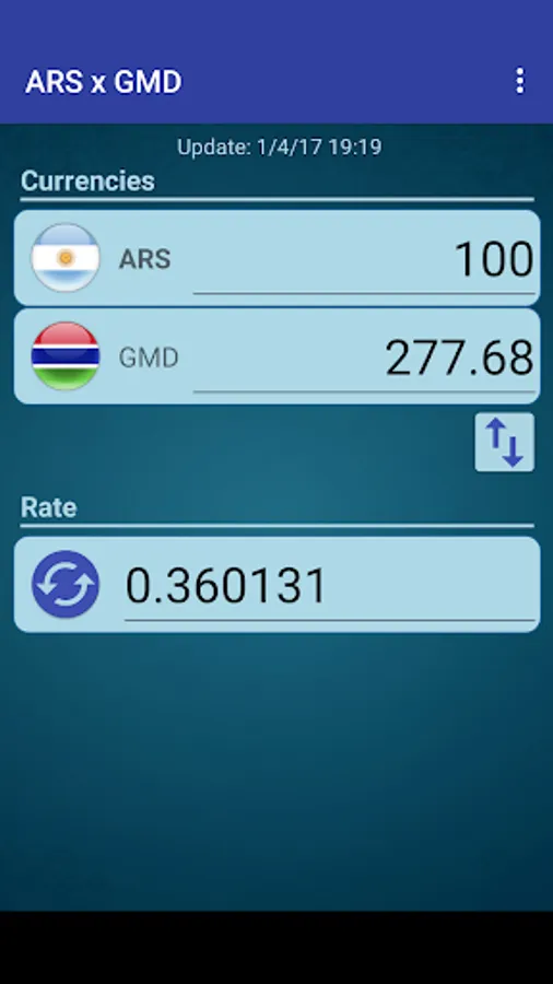 A simple currency converter from Argentine Peso to Gambian Dalasi and from Gambian Dalasi to Argentine Peso.