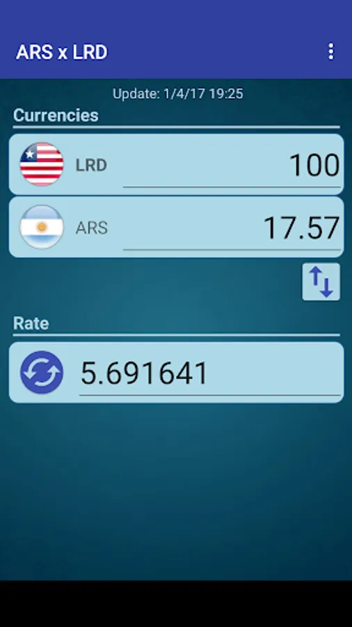 A simple currency converter from Argentine Peso to Liberian Dollar and from Liberian Dollar to Argentine Peso.